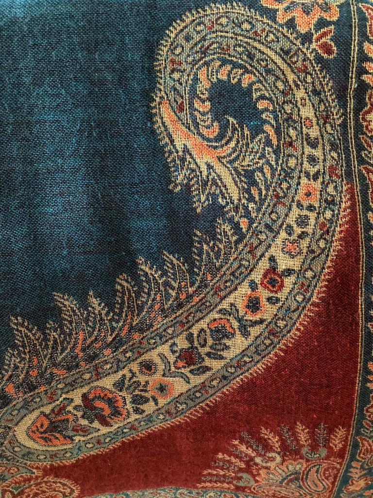 She is enjoying an intense African coffee in an exotic copper container with a very long handle.